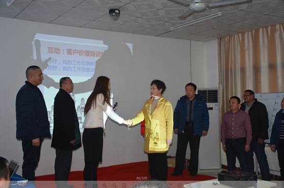 王老師以授課與體驗互動(dòng)式的授課方式,通過(guò)現場(chǎng)結對子,不斷促進(jìn)中農普寧家人拼搏進(jìn)取,做到互相監督,互相進(jìn)步,為公司發(fā)展貢獻出自己的價(jià)值,F場(chǎng)士氣高漲,授課精彩實(shí)用,使大家收獲頗豐。